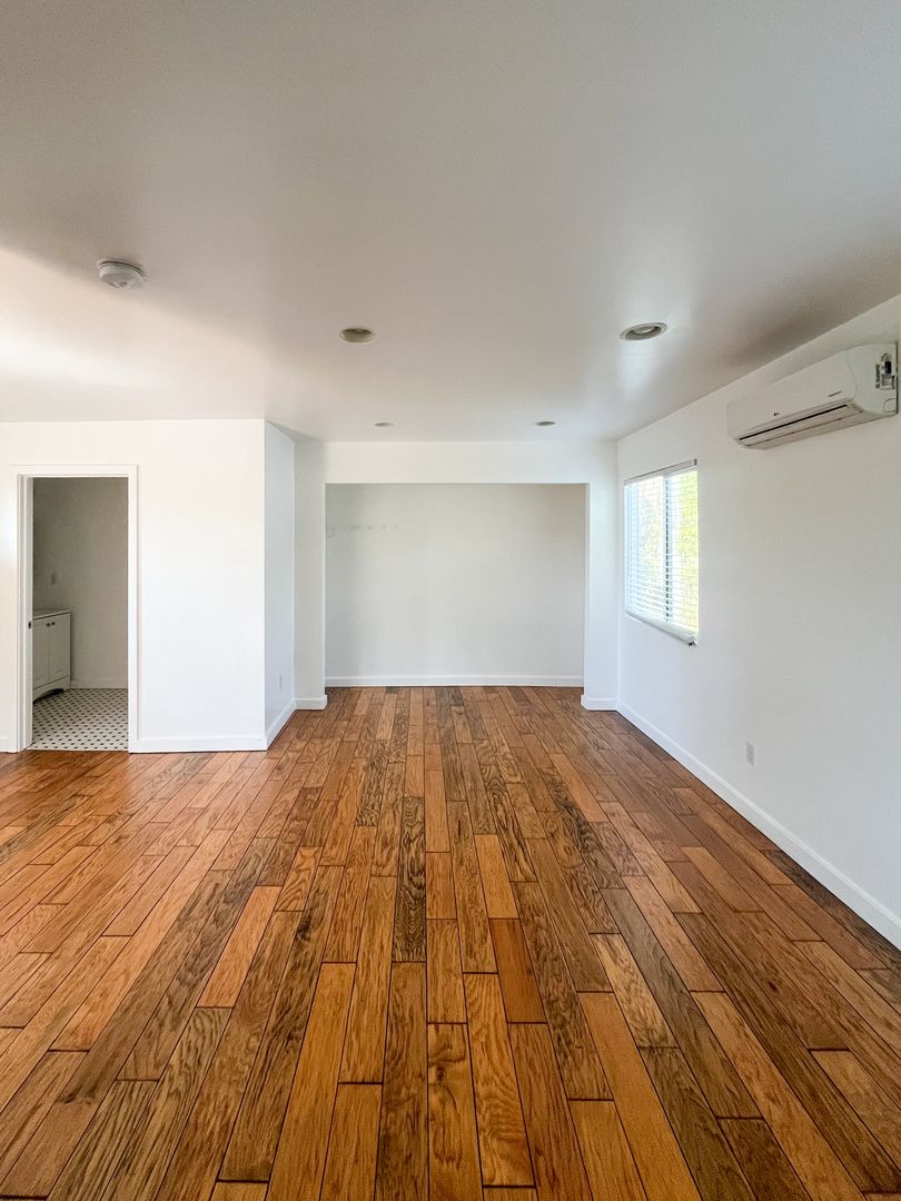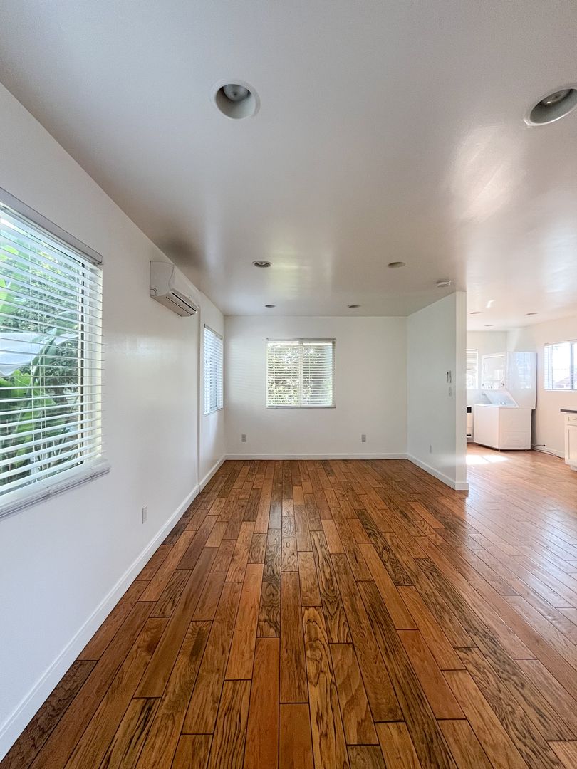 Bright and airy, the unit features hardwood floors throughout and a versatile layout that lets you create distinct living zones. You'll also find sleek stainless steel appliances, an in-unit washer/dryer, and a split-system AC/heater.
