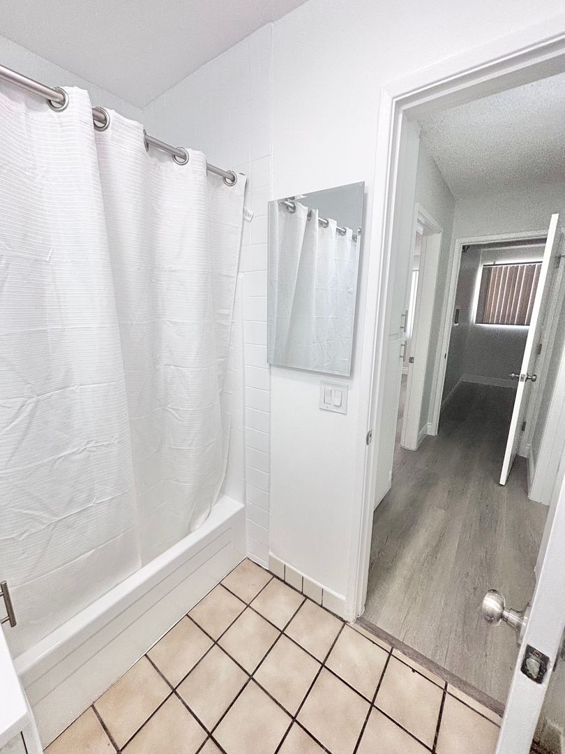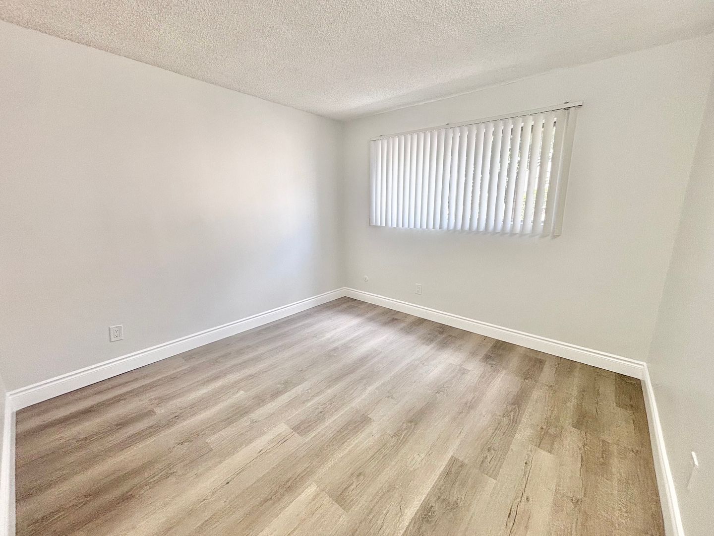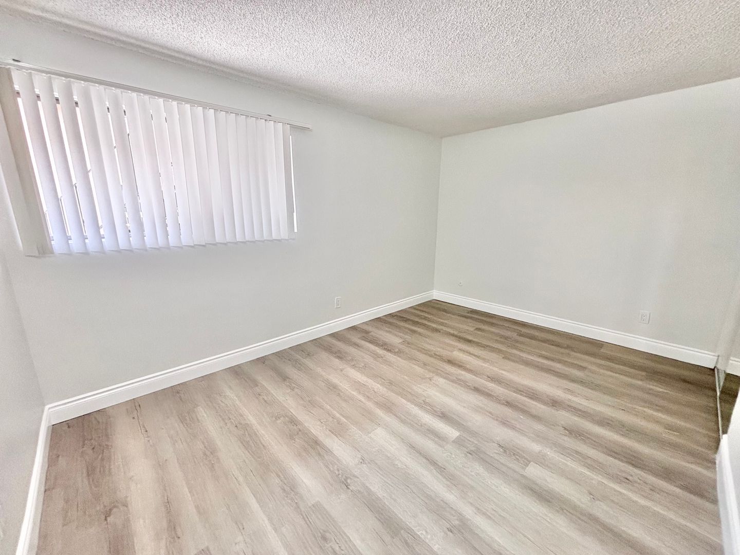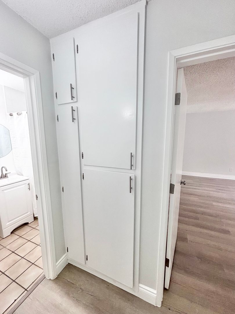 Both bedrooms are well-sized and include large mirrored closets, while the hallway offers floor-to-ceiling built-in storage for added convenience.