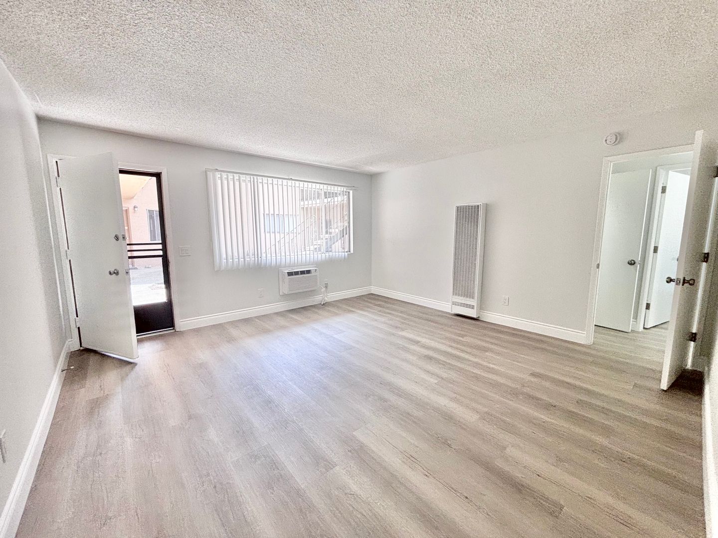 The sun-filled living area offers plenty of room to spread out and make it your own, while a wall A/C unit ensures year-round comfort. The kitchen features a brand-new stainless steel gas range and refrigerator, ample cabinet space, and a generous dining nook.