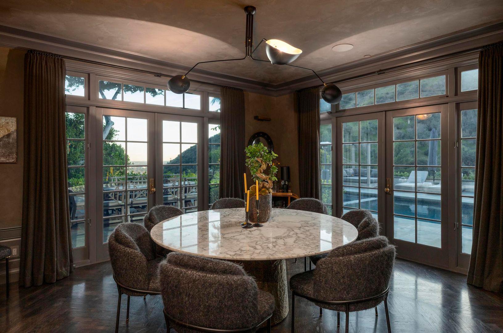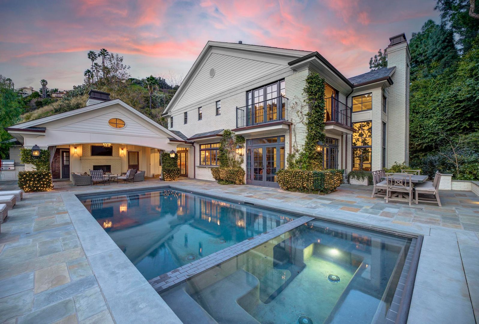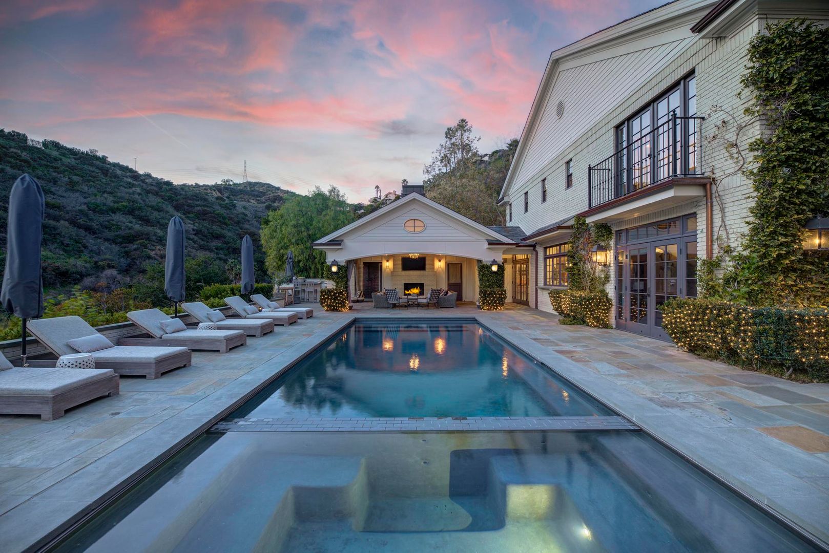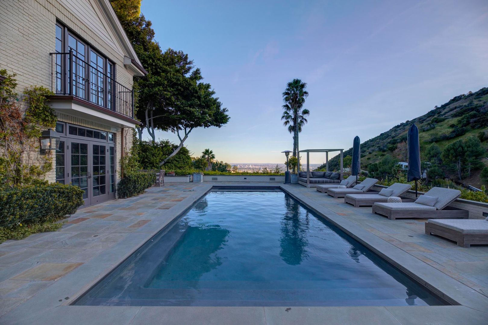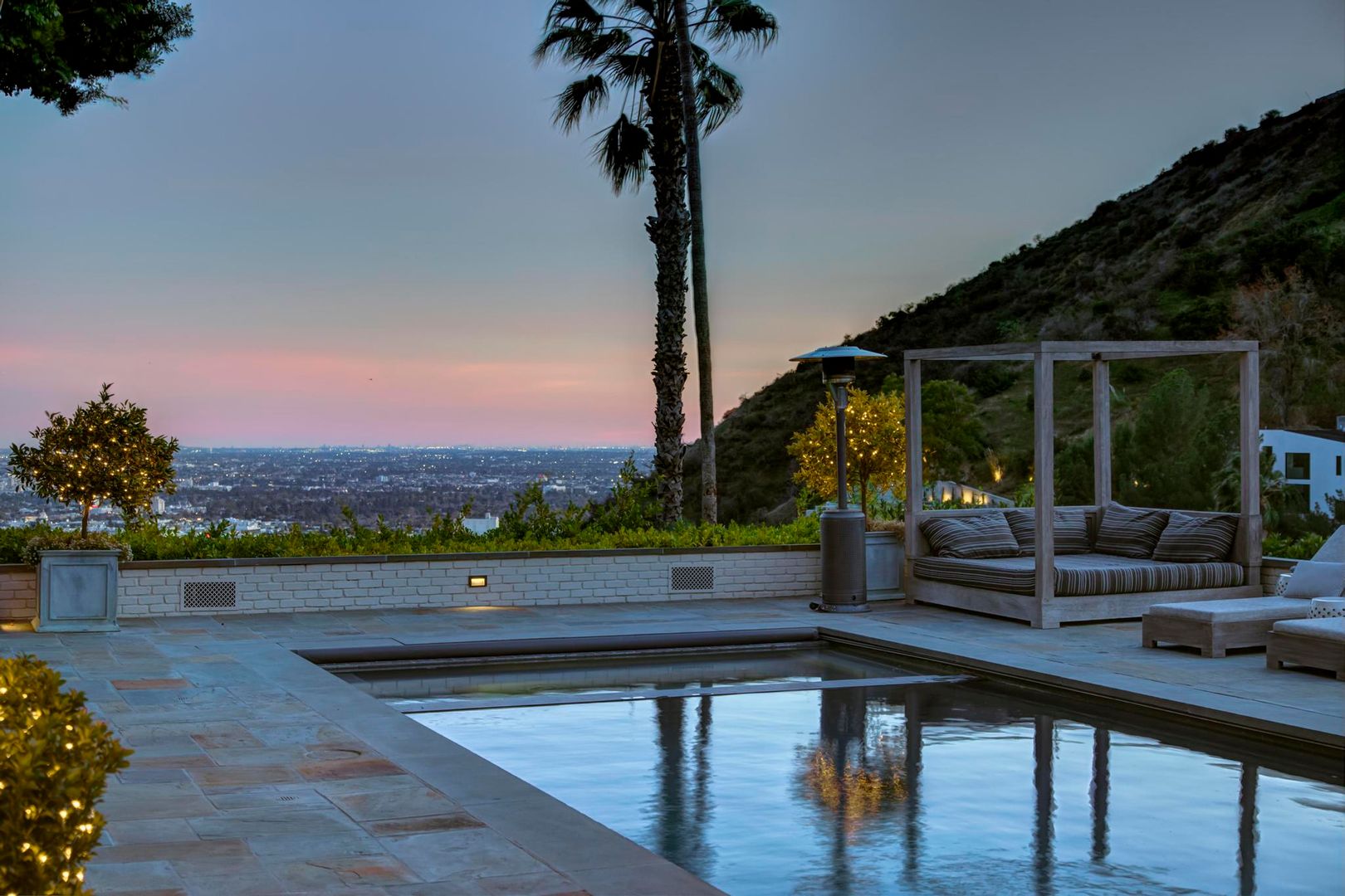 Designed for the quintessential California lifestyle, the outdoor spaces include a heated pool, spa, and multiple entertaining areas overlooking the Los Angeles skyline. Located adjacent to Runyon Canyon, the property offers easy access to world-renowned hiking trails and breathtaking vistas.