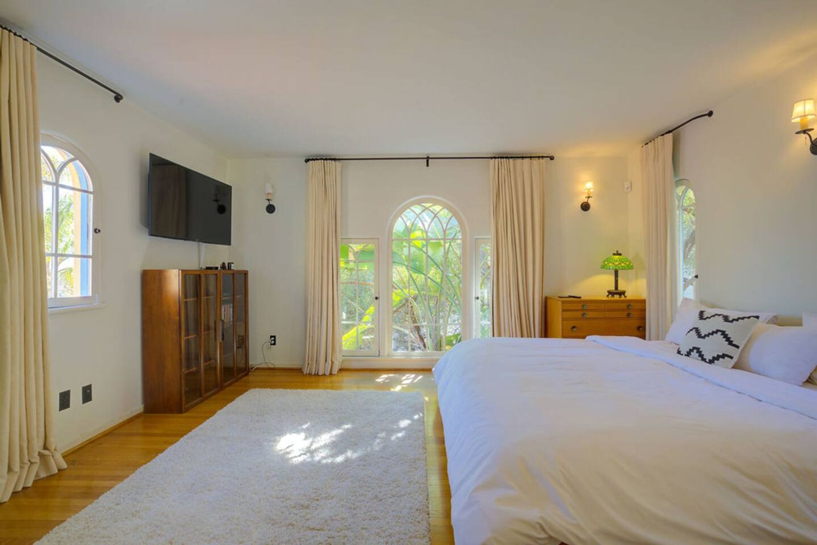 Step into the golden age of Hollywood at this resplendent Spanish villa tucked behind a gated drive in the coveted hills of Los Feliz. Built in 1922, this sun-drenched fully furnished 3 bedroom, 3 bath sanctuary brims with Old World charm. Intact arched doorways, floor-to-ceiling windows, vintage tiled bathrooms, and ornate detailing echoing a bygone era seamlessly intermingle with modern upgrades and contemporary comfort.