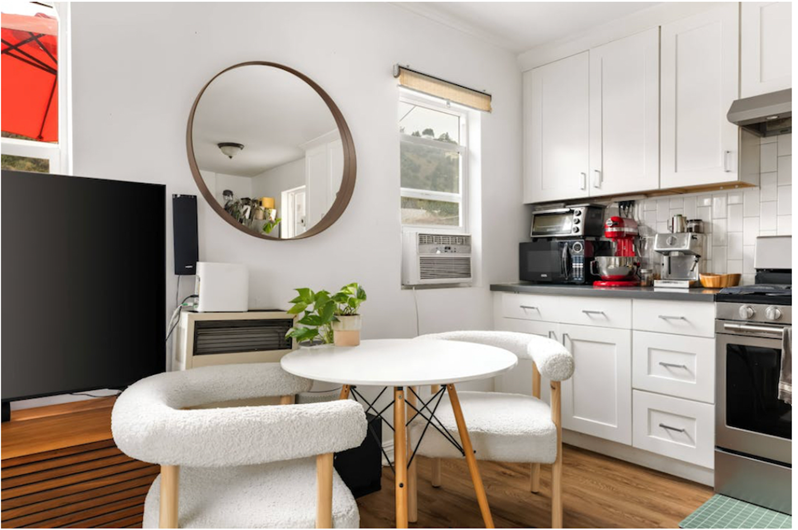 The main unit features an oversized bedroom with a generous closet area, an updated kitchen and bath, and abundant natural light throughout. The layout feels open yet functional, blending comfort with modern finishes.